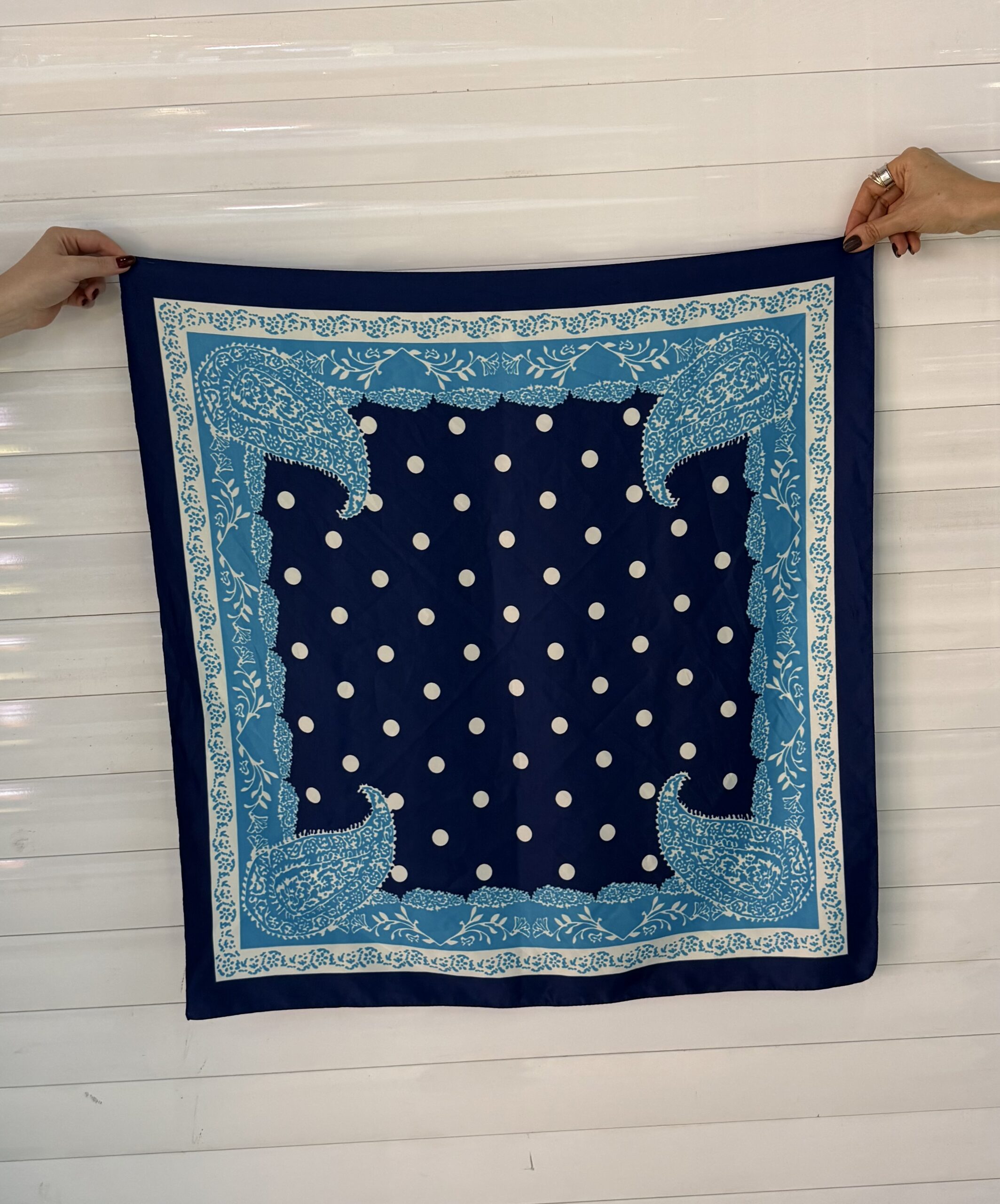 Turkuaz Lacivert Puan Desen Fular (70x70 cm) adet