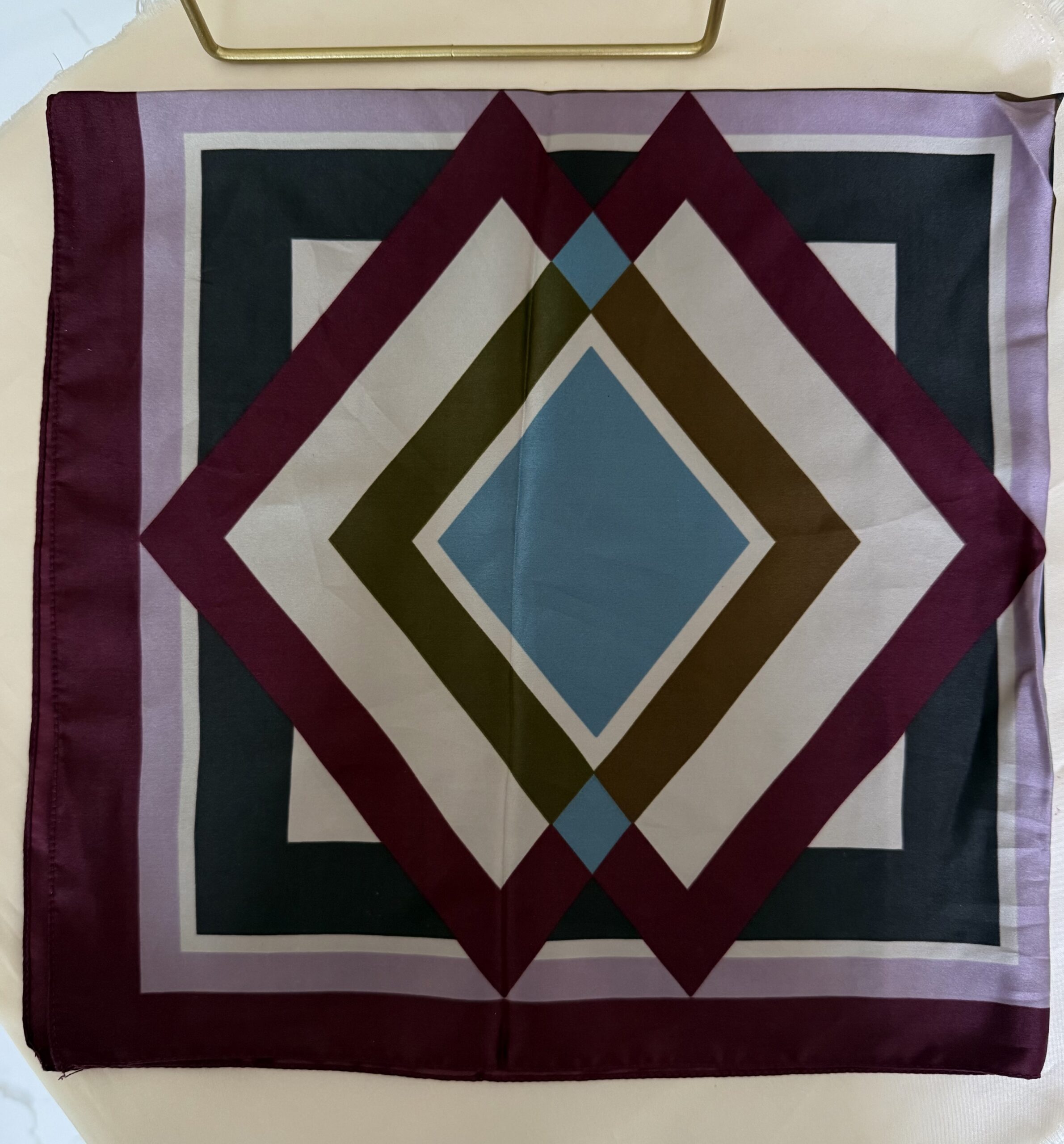 Turkuaz Lila Bordo Geometrik Desen Saten Fular