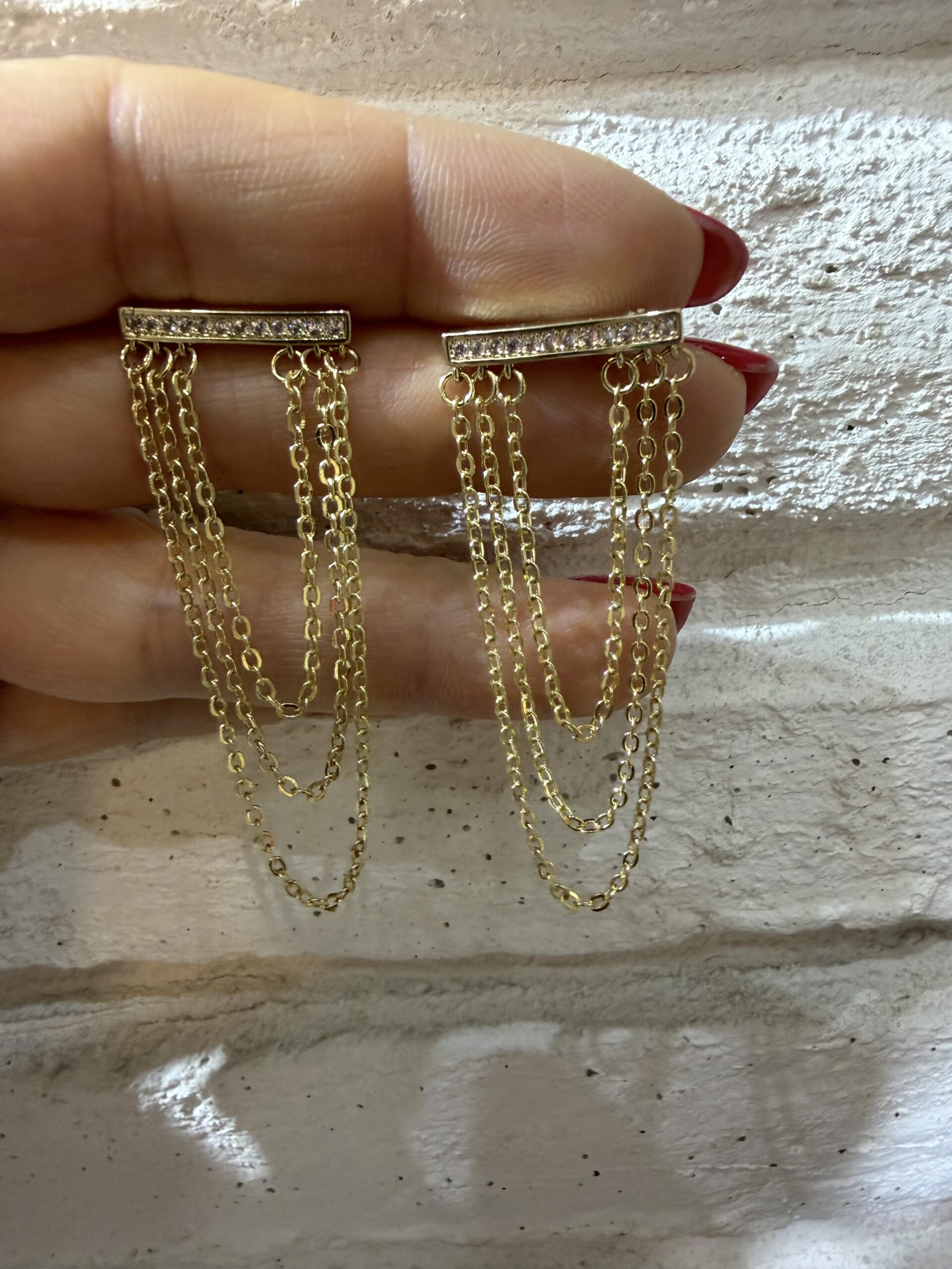 Üstü Tek Sıra Taş Zincir Salkım Küpe adet