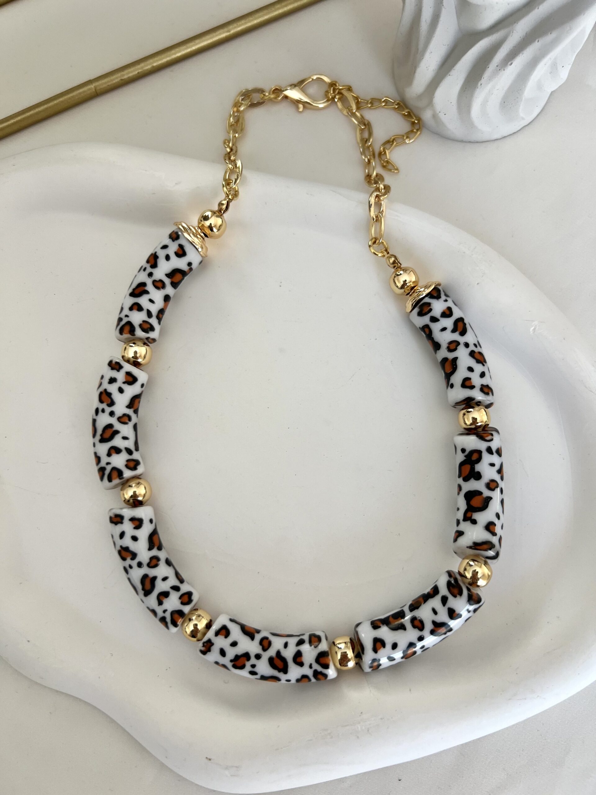 Üzeri Mini Leopar Desen Kemik Tasarım Kolye adet