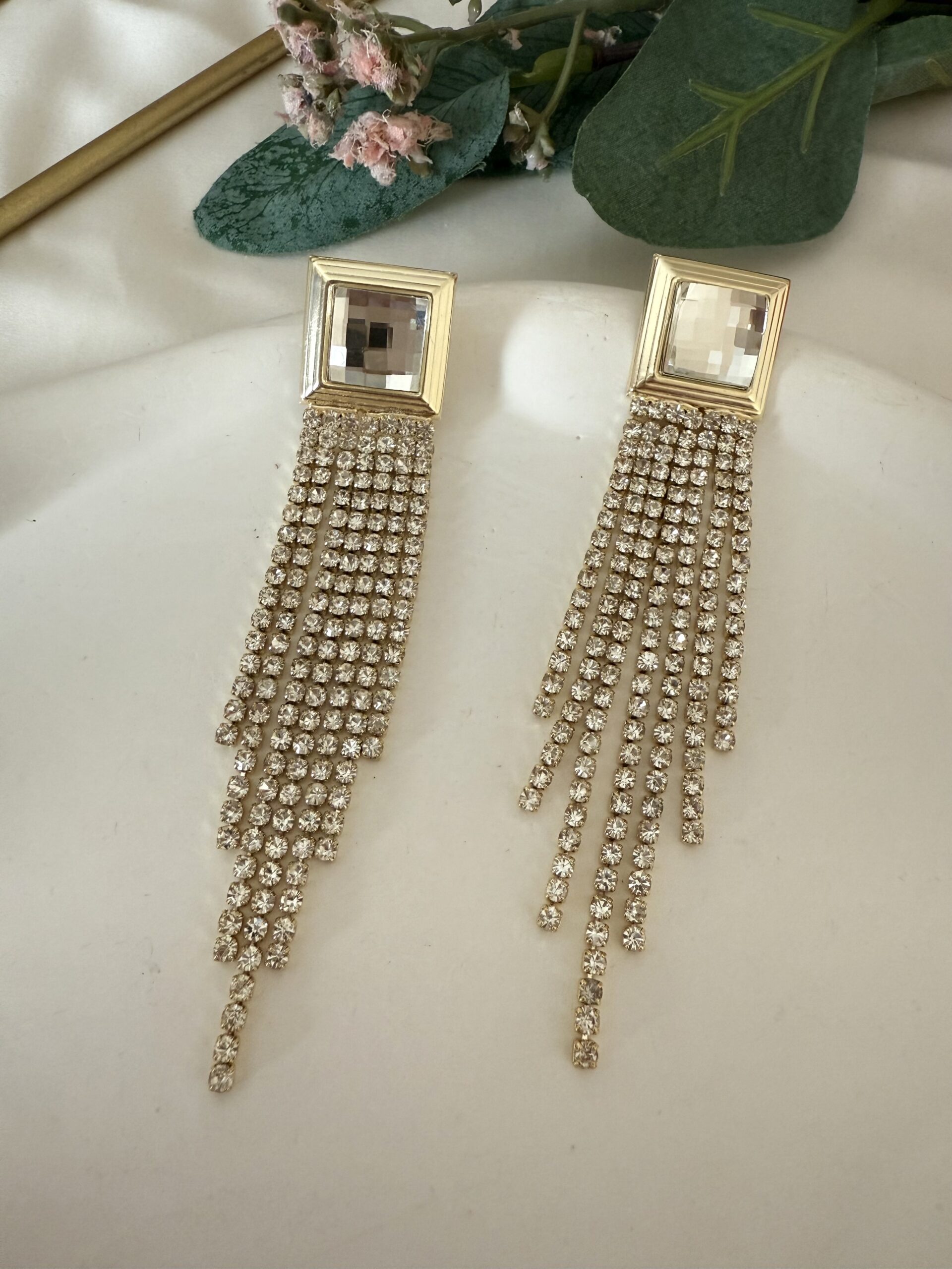 Uzun Sallantılı Kare Taş Küpe