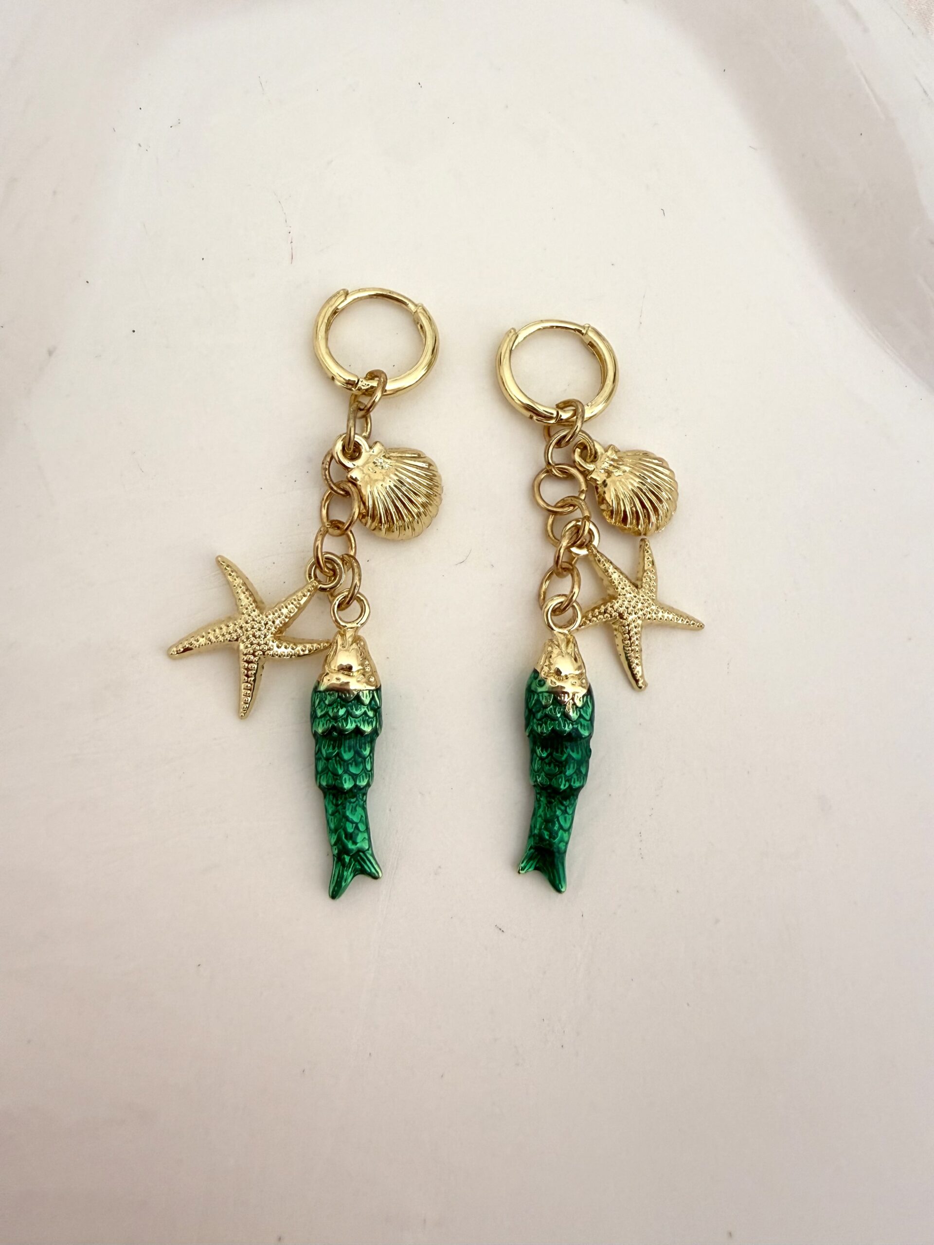 Uzun Yeşil Sallantılı Balık Deniz Yıldızı Kolye