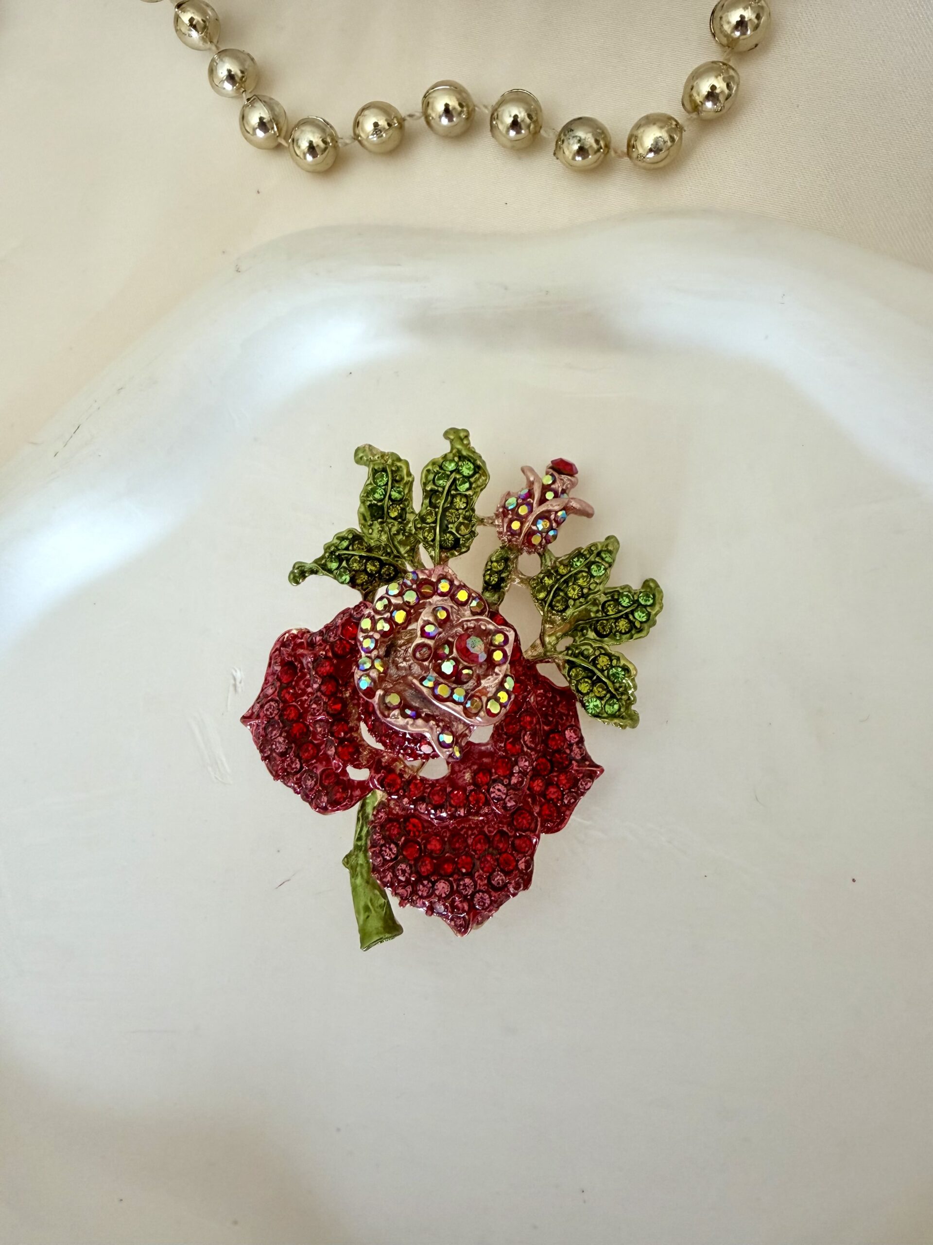 Yapraklı Taşlı Gül Broş