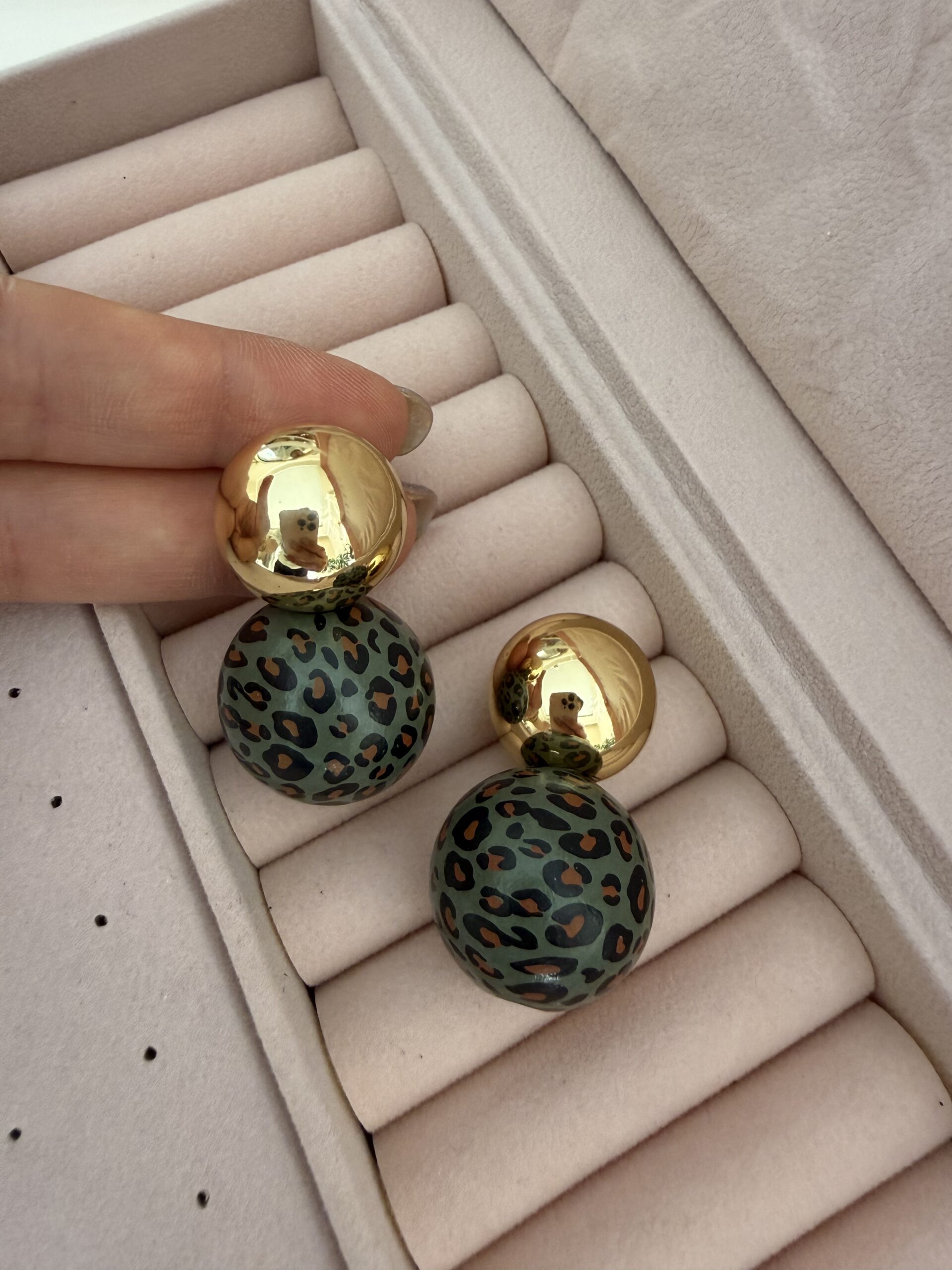 Yeşil Leopar Top Gold Plaka Küpe
