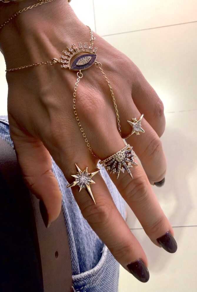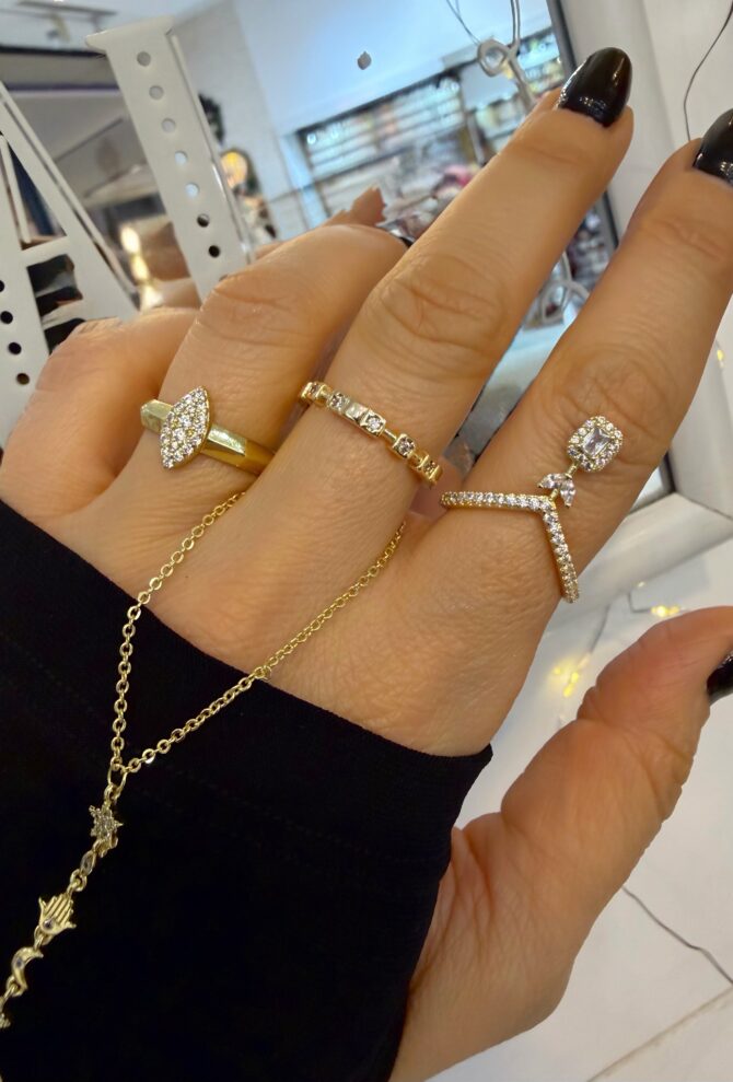 Ayarlı Taşlı Kafes Yüzük Kombin