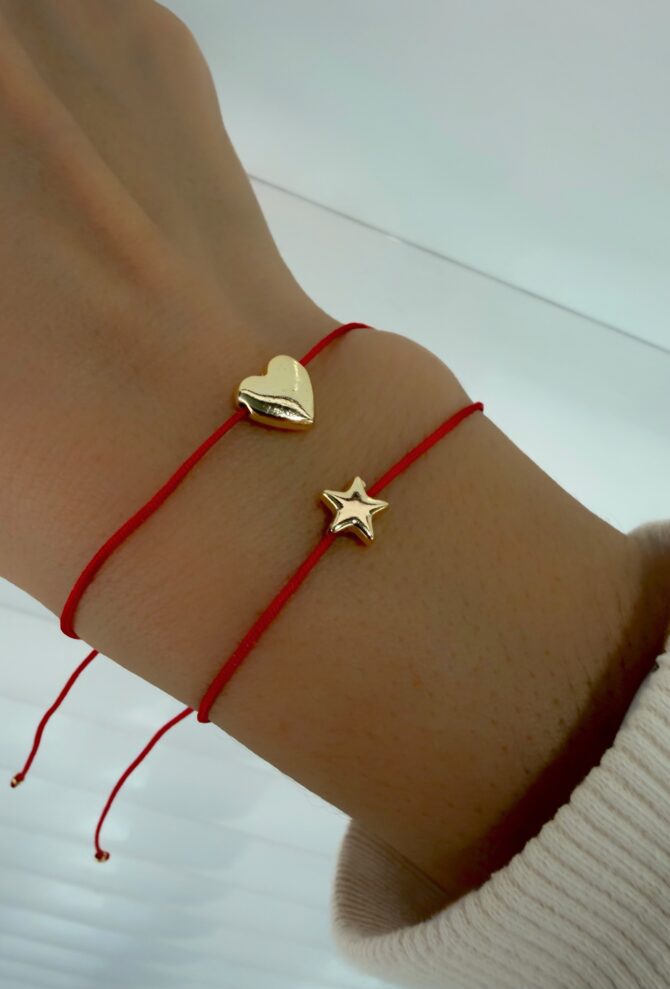 Mini Gold Plaka Figür Kırmızı İp Bileklik
