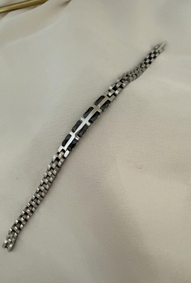Çelik Ortası Siyah Desen Gümüş Erkek Bileklik