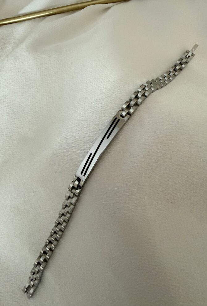 Çelik Gümüş Üzeri Çizgi Erkek Bileklik
