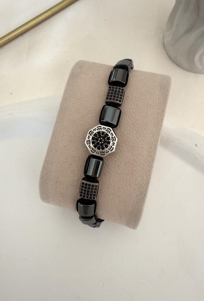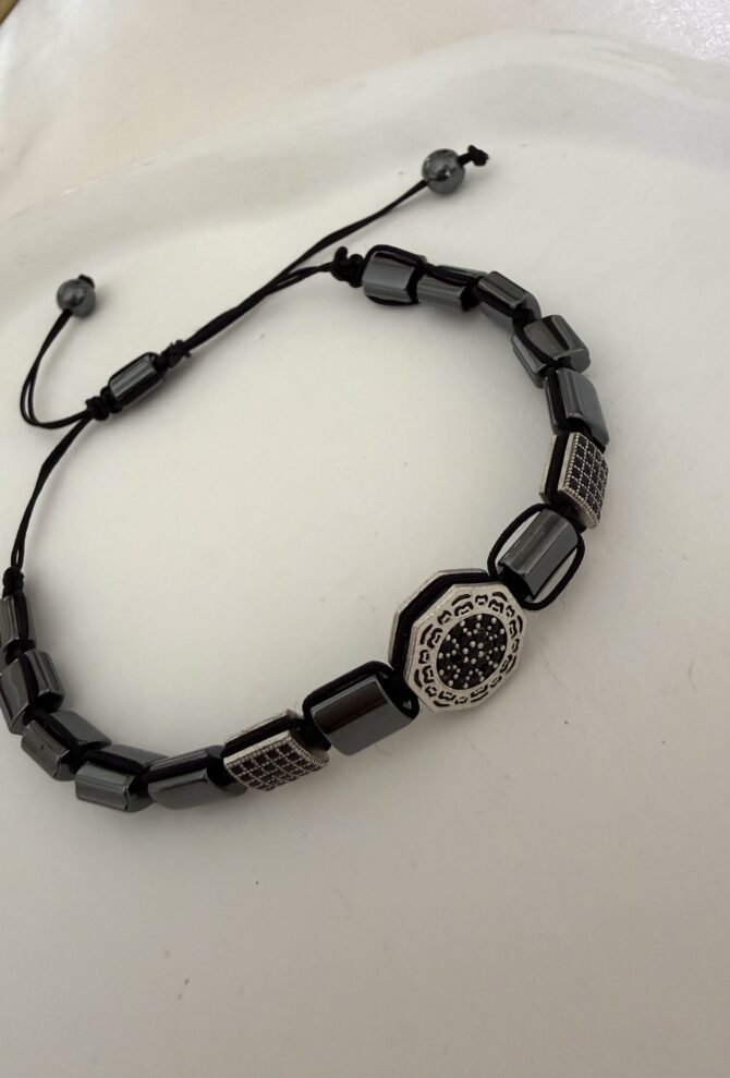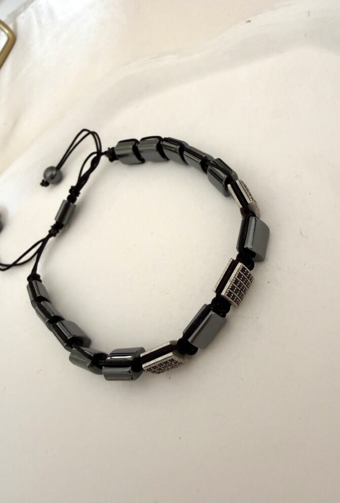 Tasarım Zirkon Taş Detay Hematit İpli Ayarlı Erkek Bileklik