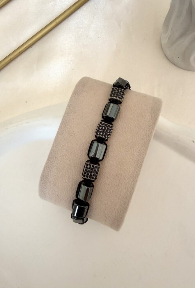Küp Hematit Detay Doğaltaş Erkek Bileklik