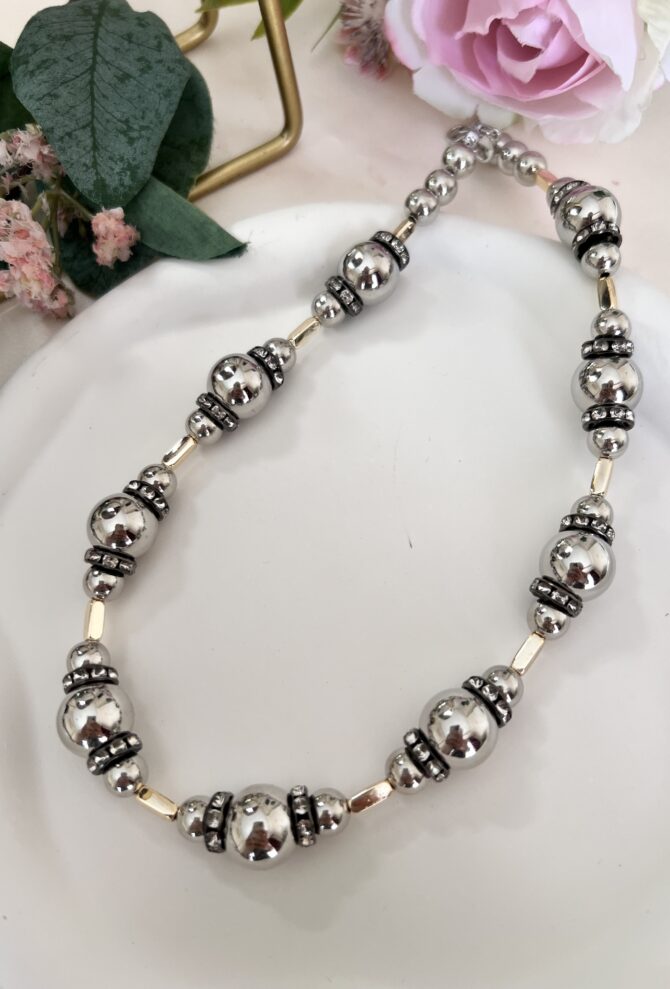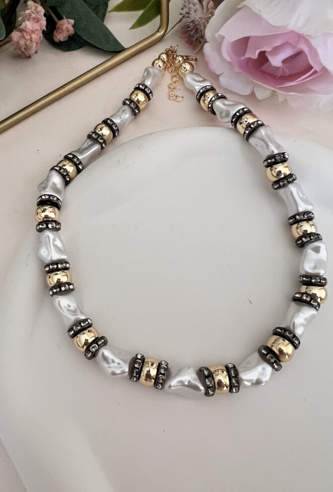 Yarısı İnci Yarısı Siyah Top Boncuk Tasarım Kolye