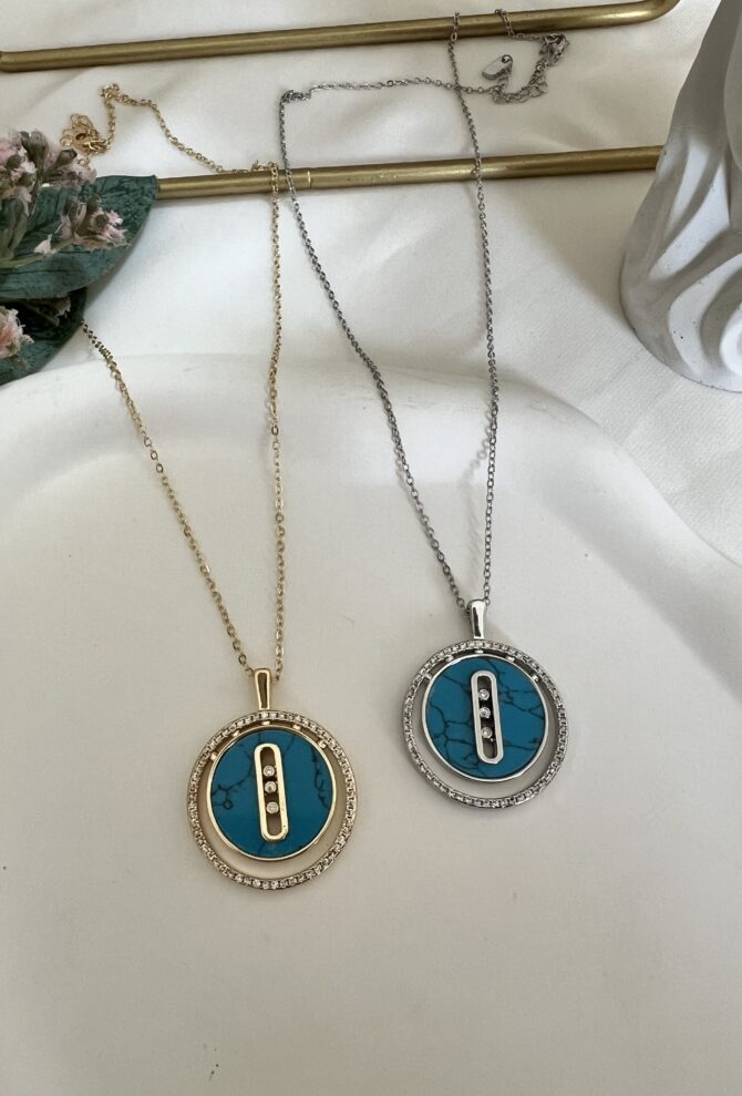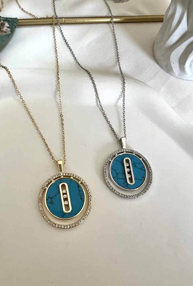 Tasarım Araları Taş Plaka Gümüş Topçuk Kolye