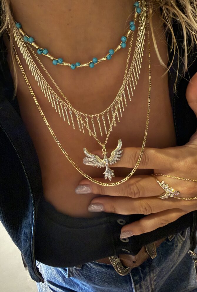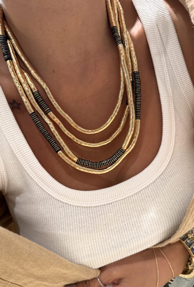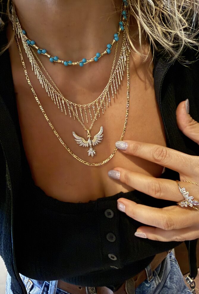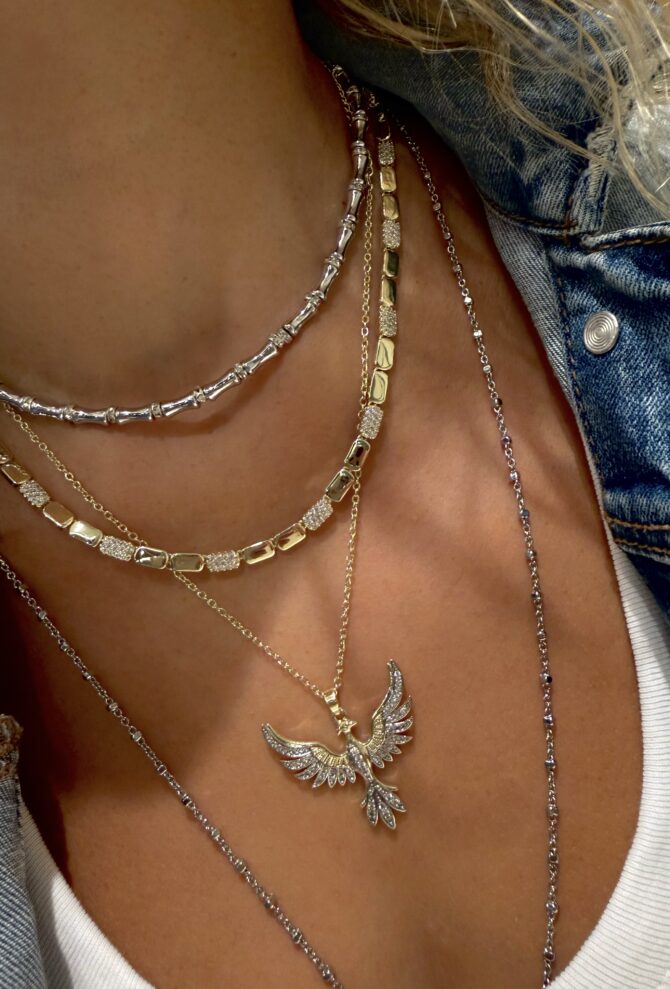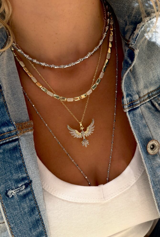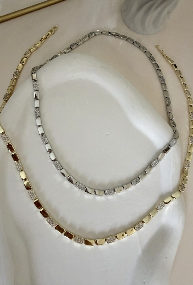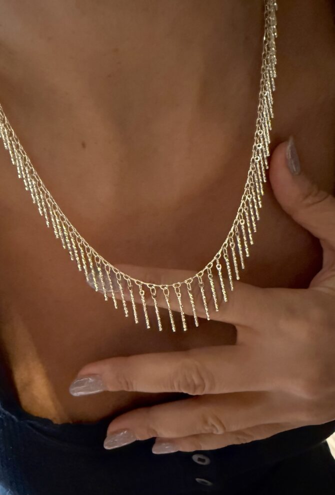 Gold Silindir Topçuk Dizi Işıltılı Kolye