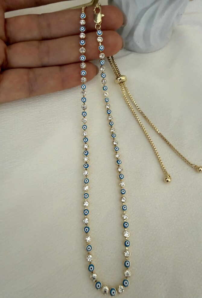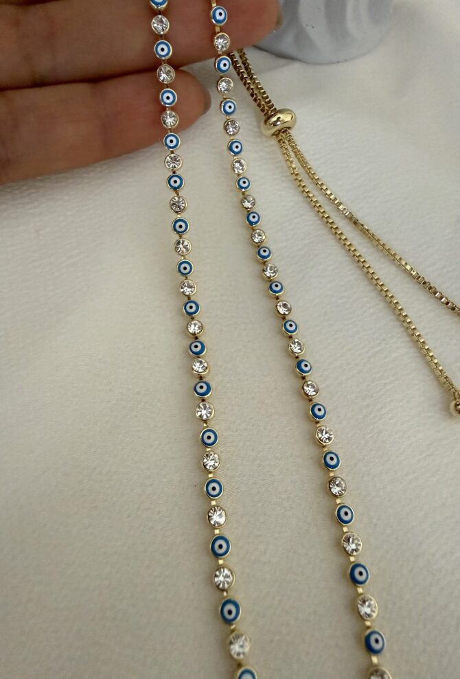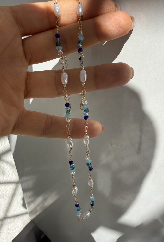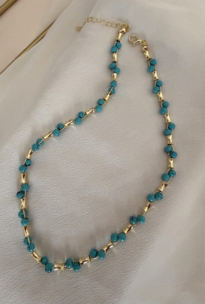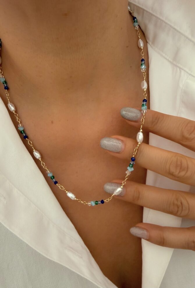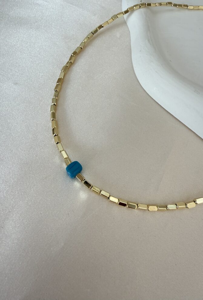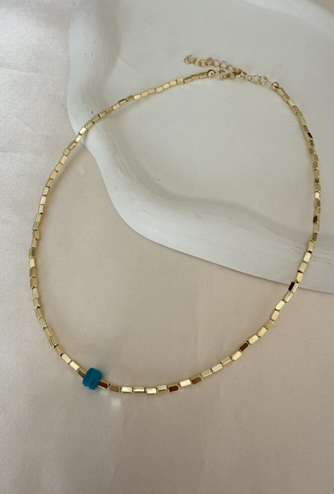 Ortası Mavi Boncuk Işıltılı Silindir Kolye