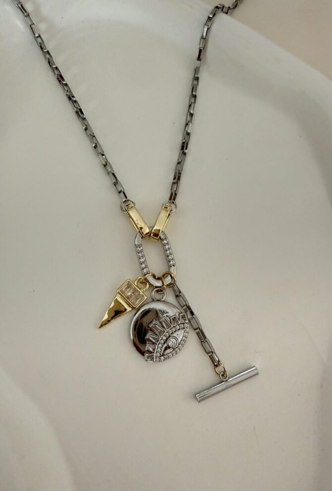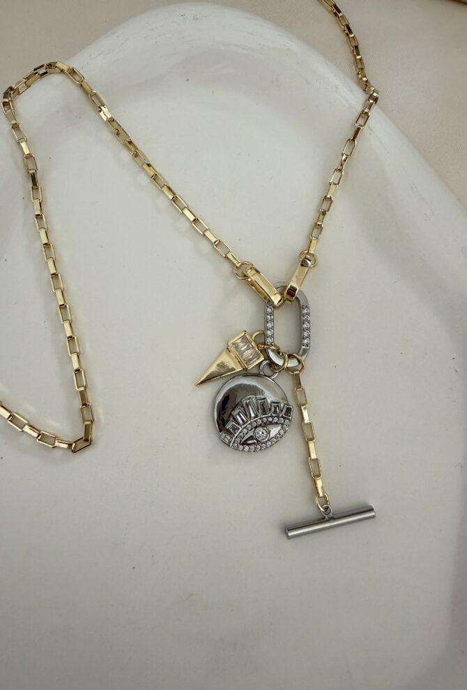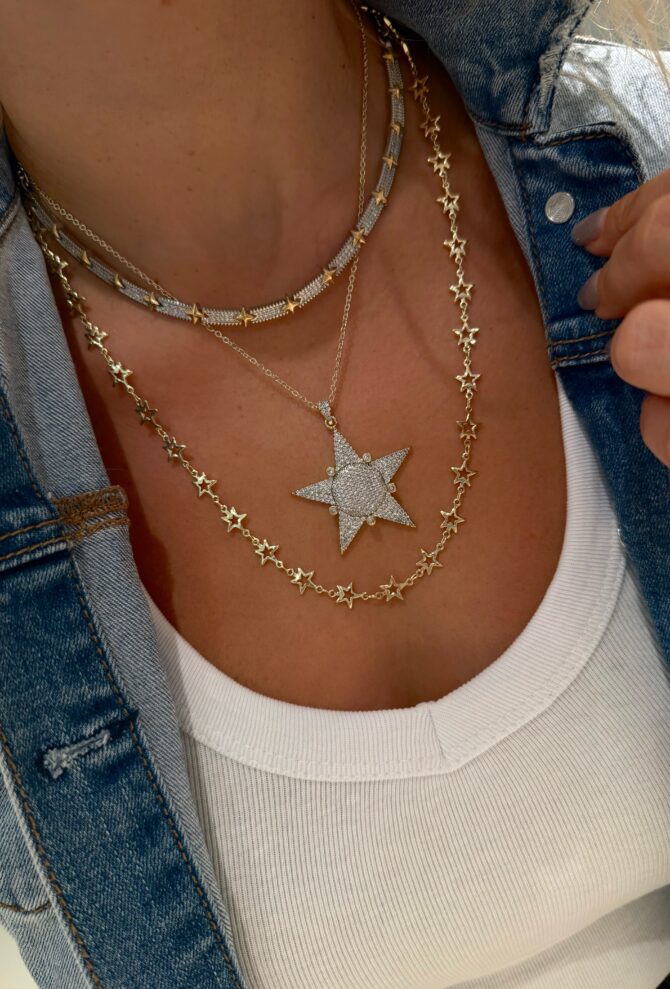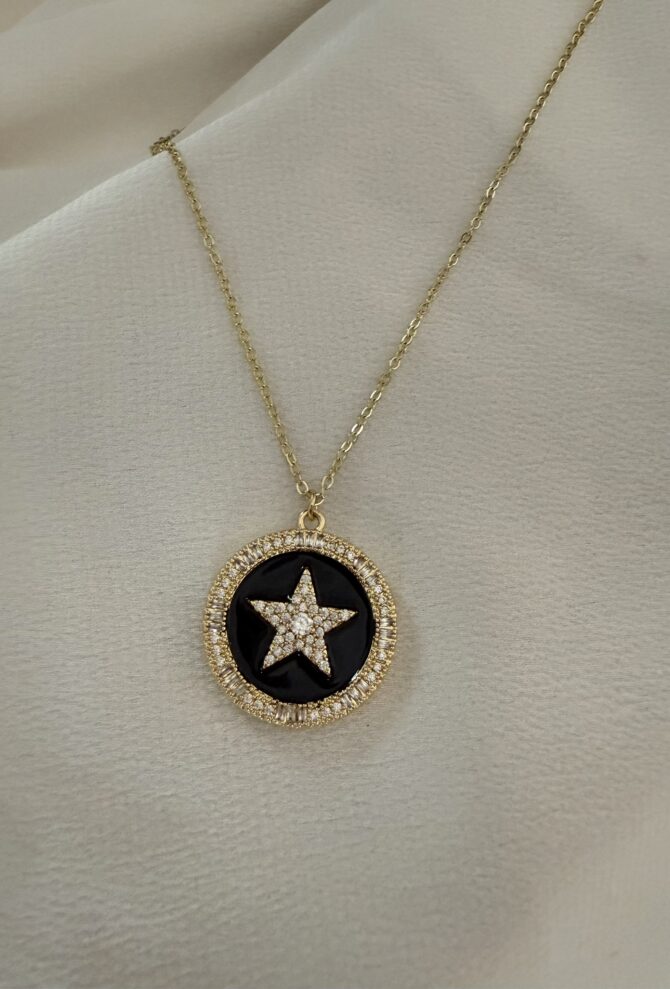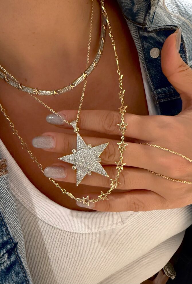 Gold Gümüş İri Taşlı Yıldız Kolye Kombin