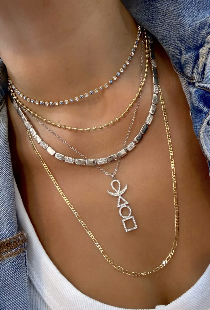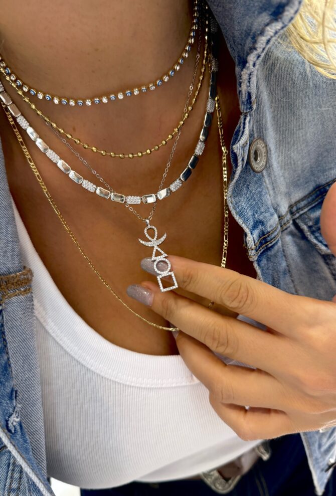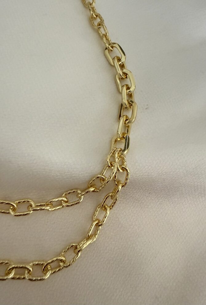 Önü Çift Sıra Halka Geçme Zincir Kolye