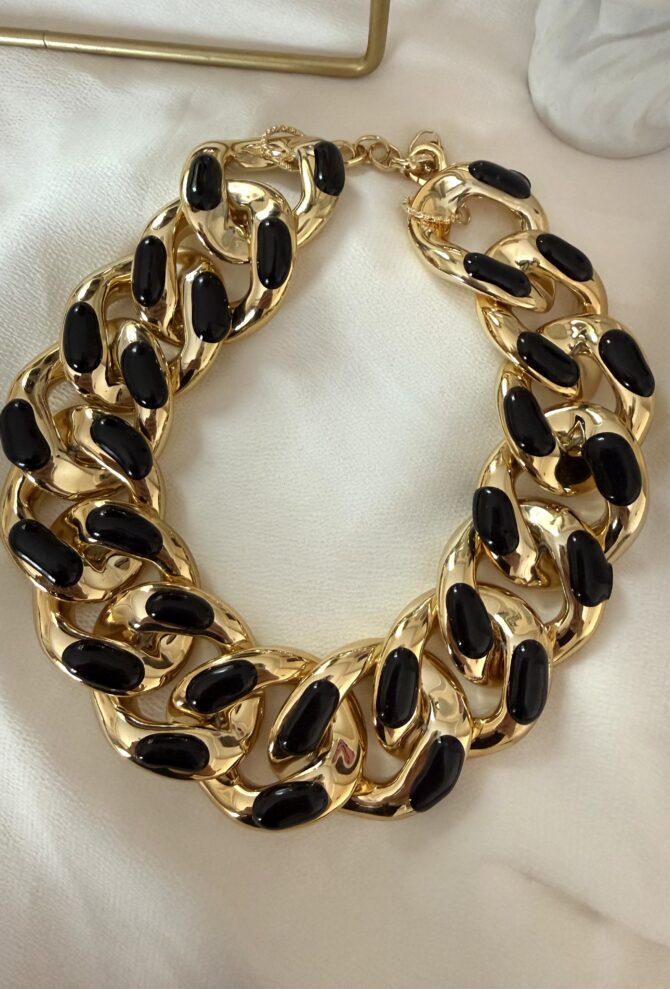 Gold Siyah Çift Taraflı İri Zincir Kolye