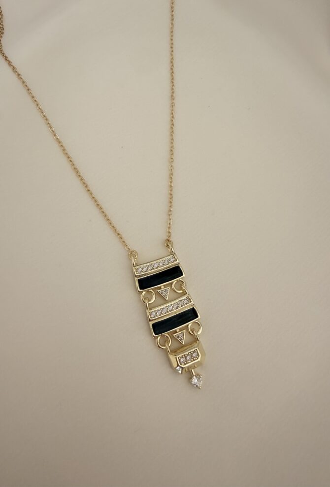 Baget Taş Sıra Siyah Mine Detay Kolye