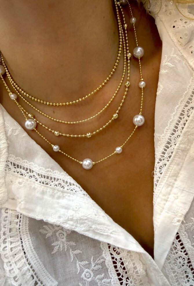 Özel Seri İnci Detay 4 Sıra Zincir Kolye