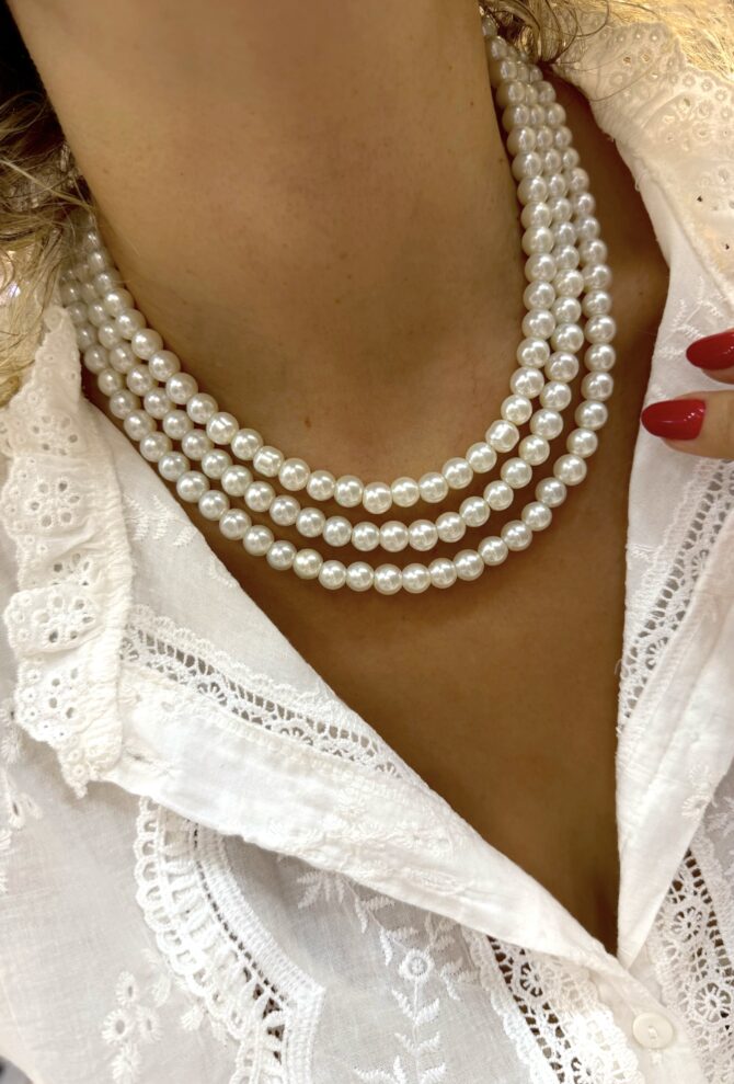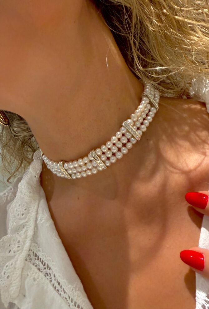 Taş Biye Orjinal 3 Sıra İnci Choker Kolye