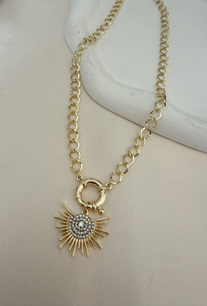 Taşlı Güneş Halka Geçme Zincir Kolye