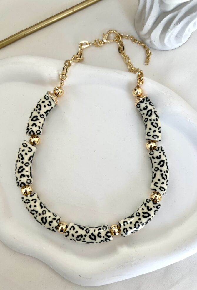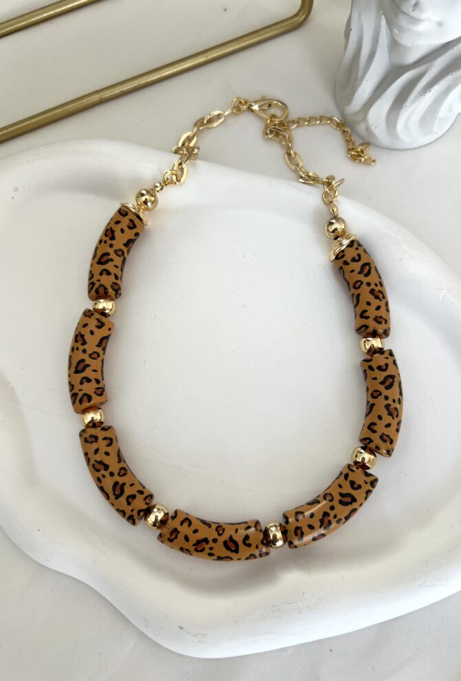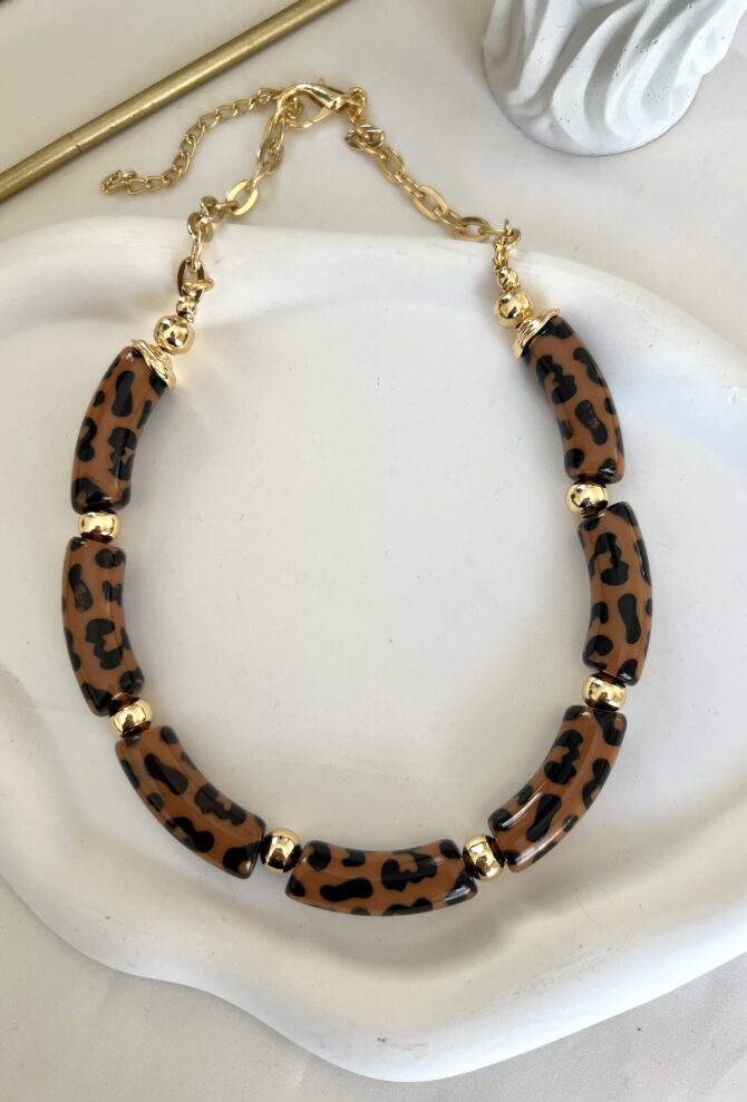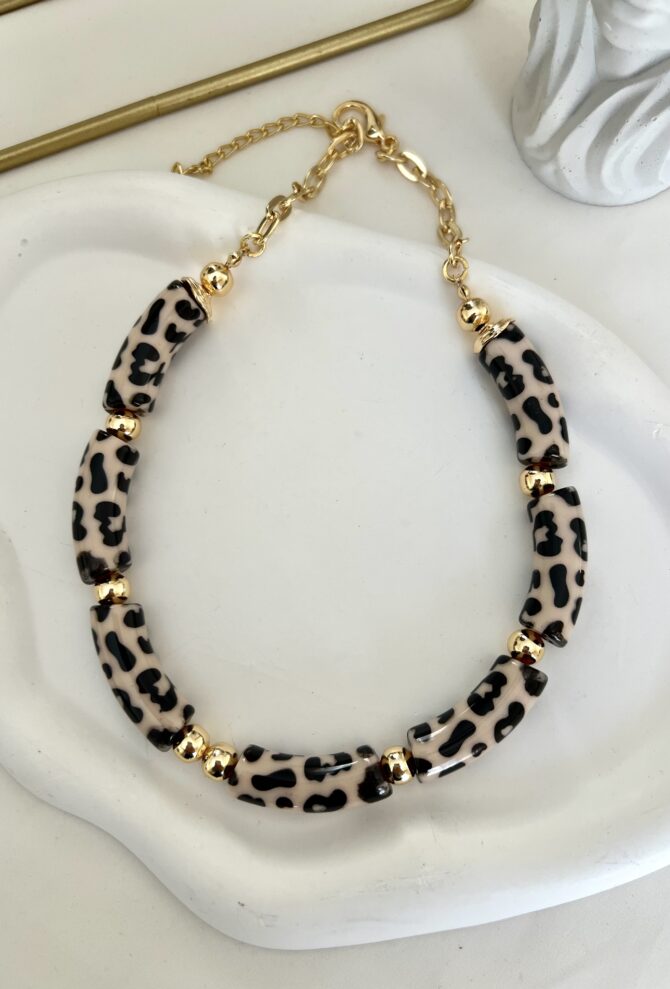 Üzeri Mini Leopar Desen Kemik Tasarım Kolye