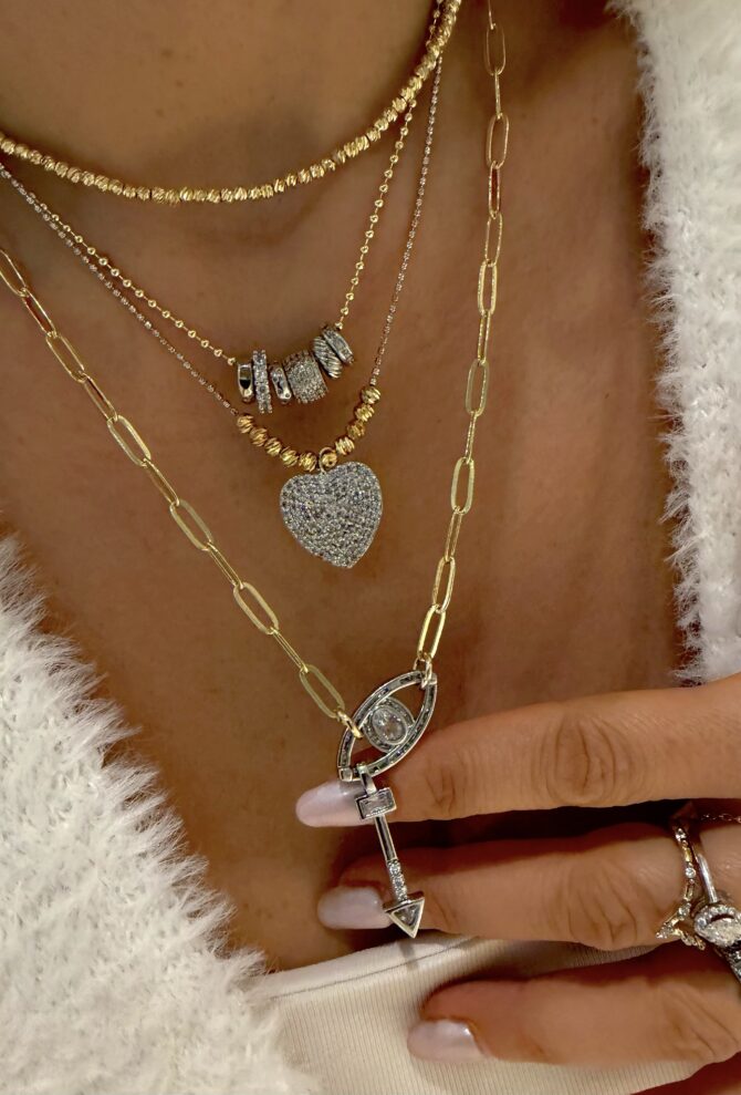 Gold Gümüş Heart Eye Kolye Kombin