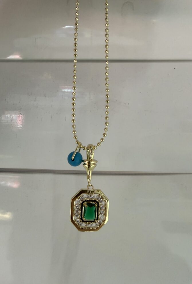Mavi Boncuk Zümrüt Yeşil Taş Serenay Kolye