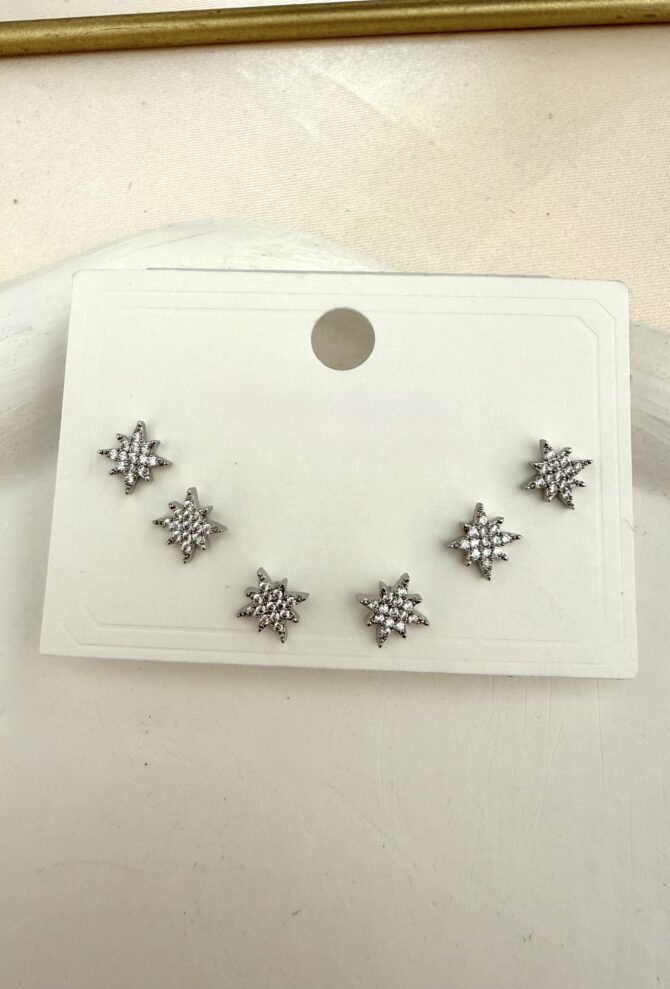 Üzeri Mini Yıldız Dikdörtgen Üçlü Küpe Seti