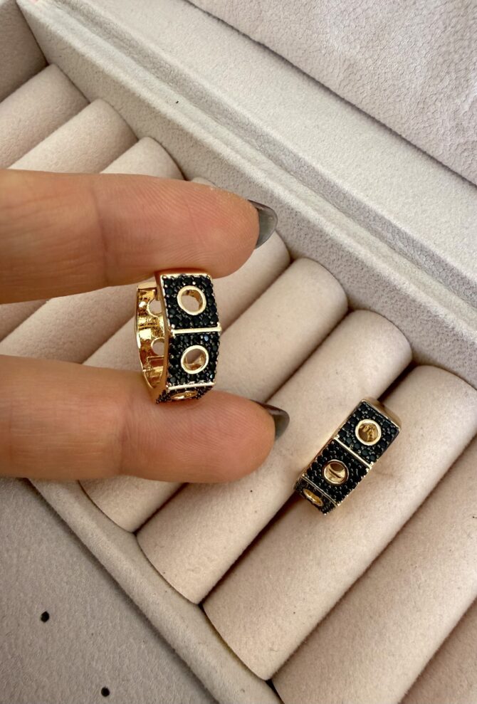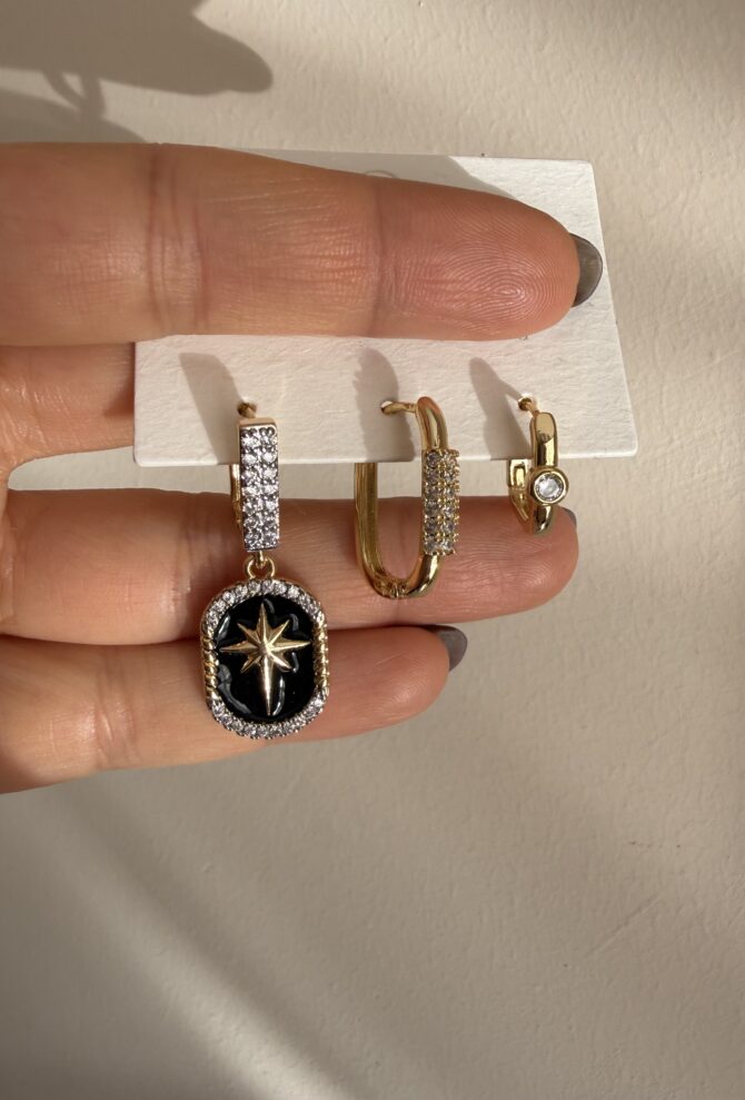 Siyah Mineli Kuzey Yıldızı Üçlü Küpe