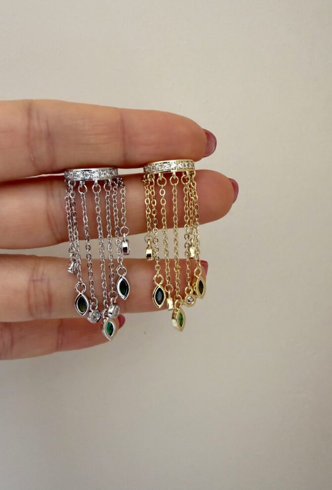 Yeşil Taş Ve Zincir Sallantılı Kıkırdak Küpe