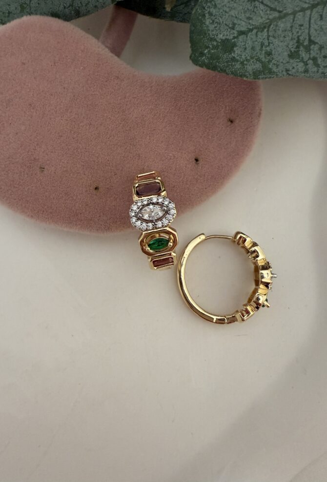 Özel Seri Üzeri Renkli Taş Halka Küpe