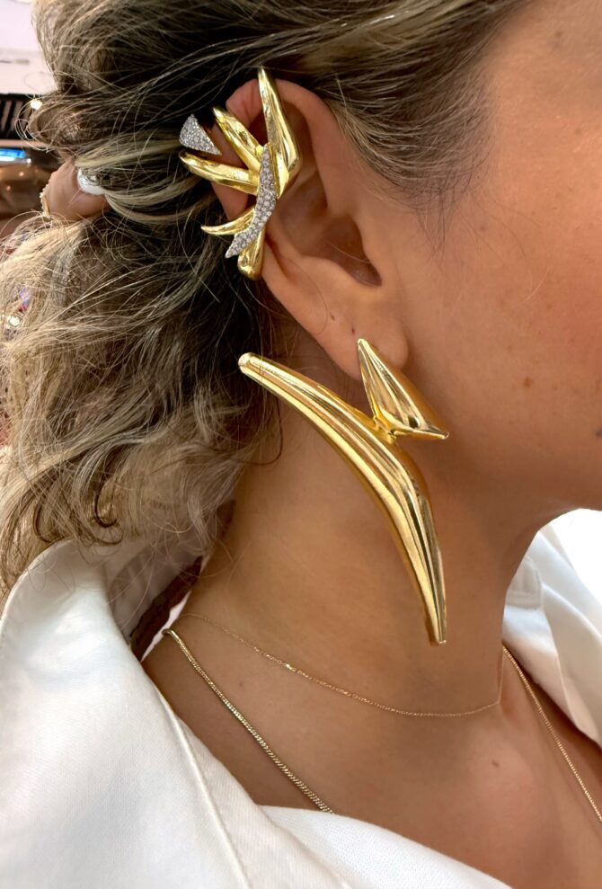 Özel Seri Gold Plaka Üzeri Taş İşleme V kıkırdak Küpe