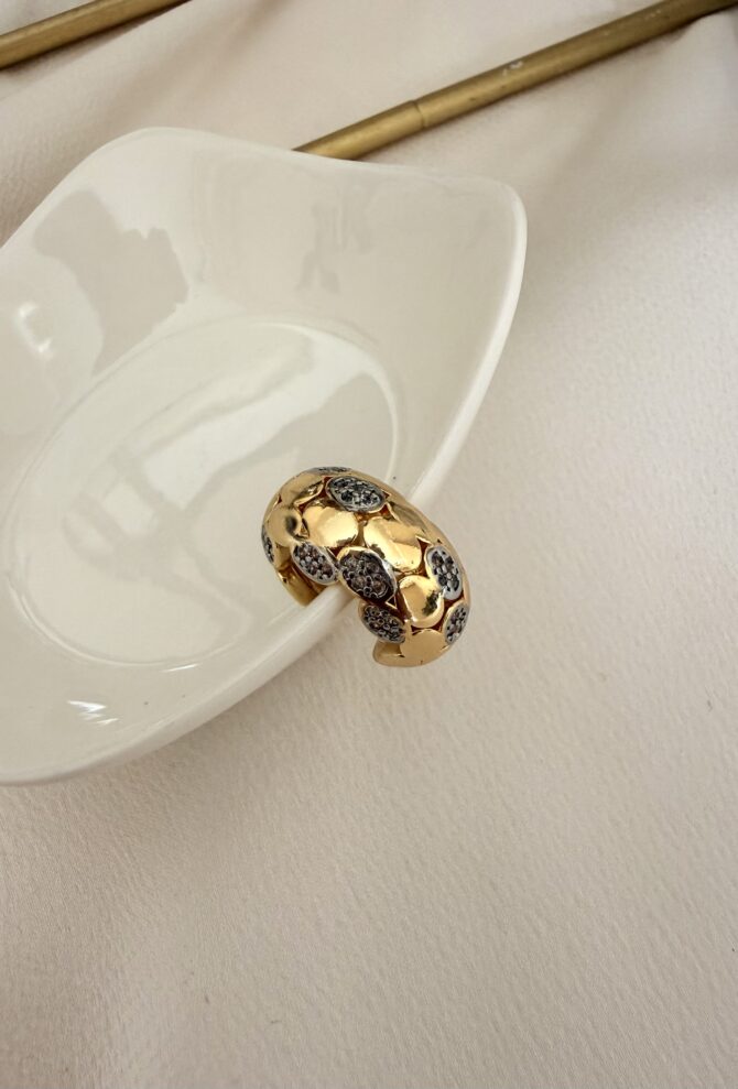 Luxury Taşlı Gold Halka Kıkırdak Küpe