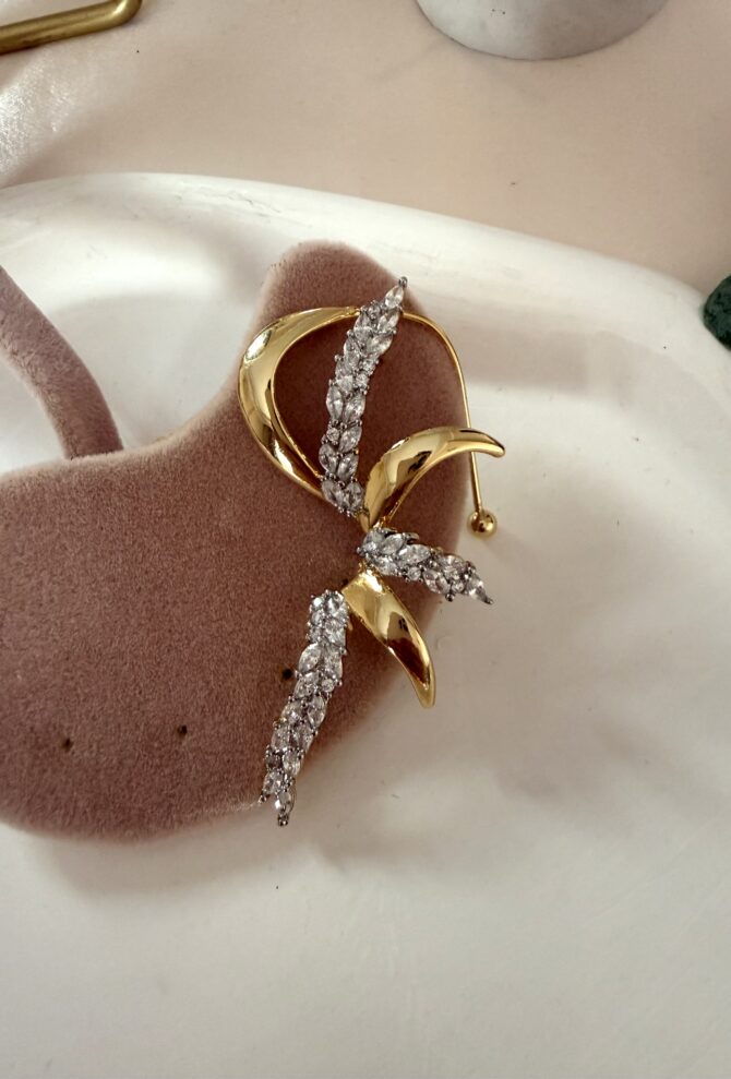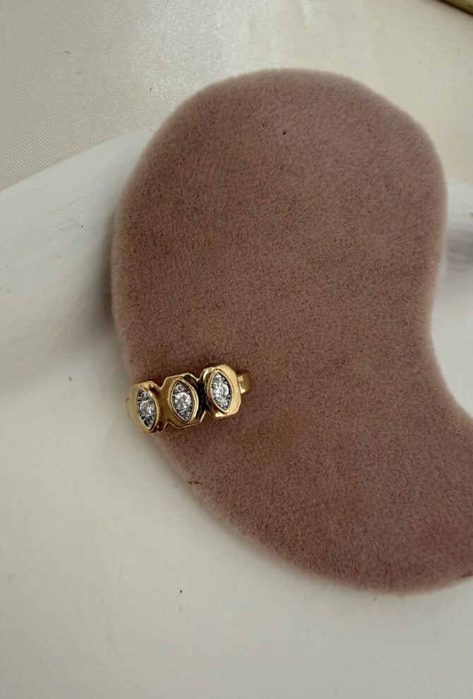 Taşlı Gold Tasarım Kulak Arkası Küpe