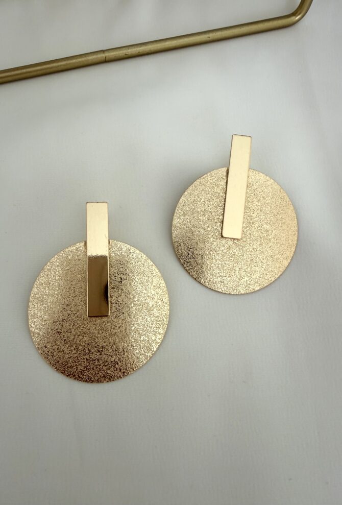 Kenarı Gold Mat Gümüş Plaka Yıldız Küpe
