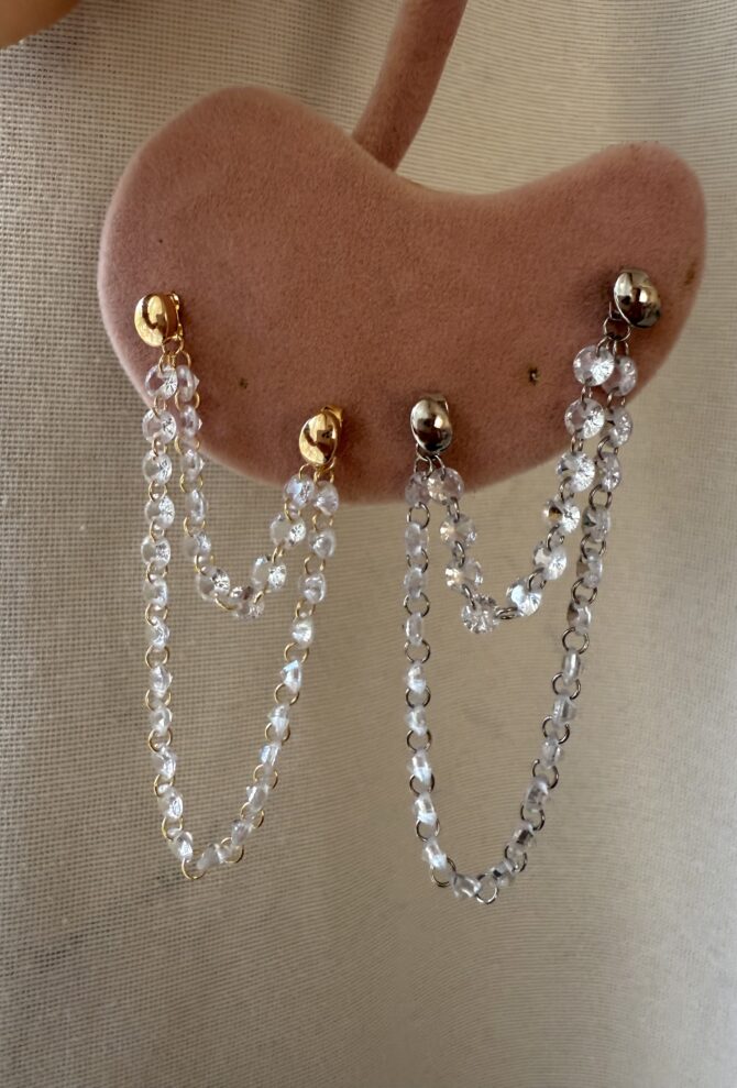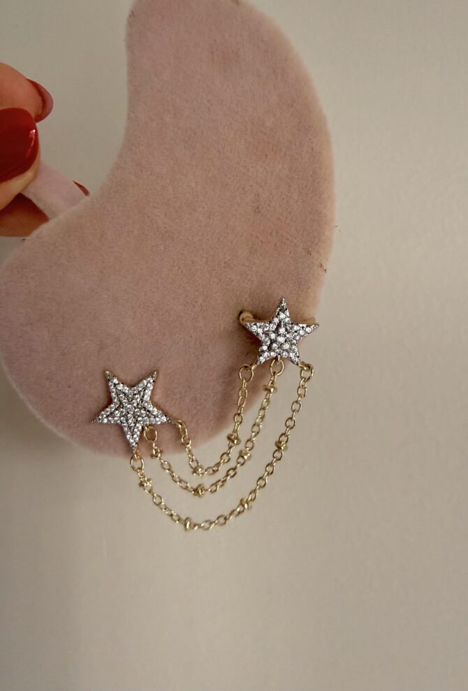Zincir Sallantılı Kıkırdaklı Taşlı Yıldız Küpe
