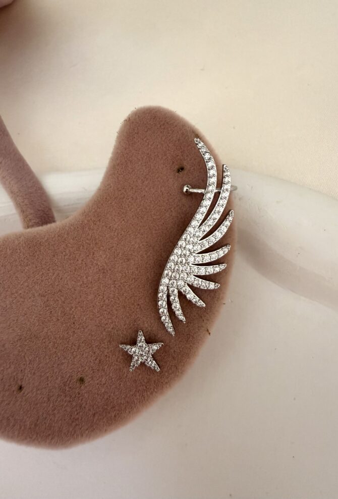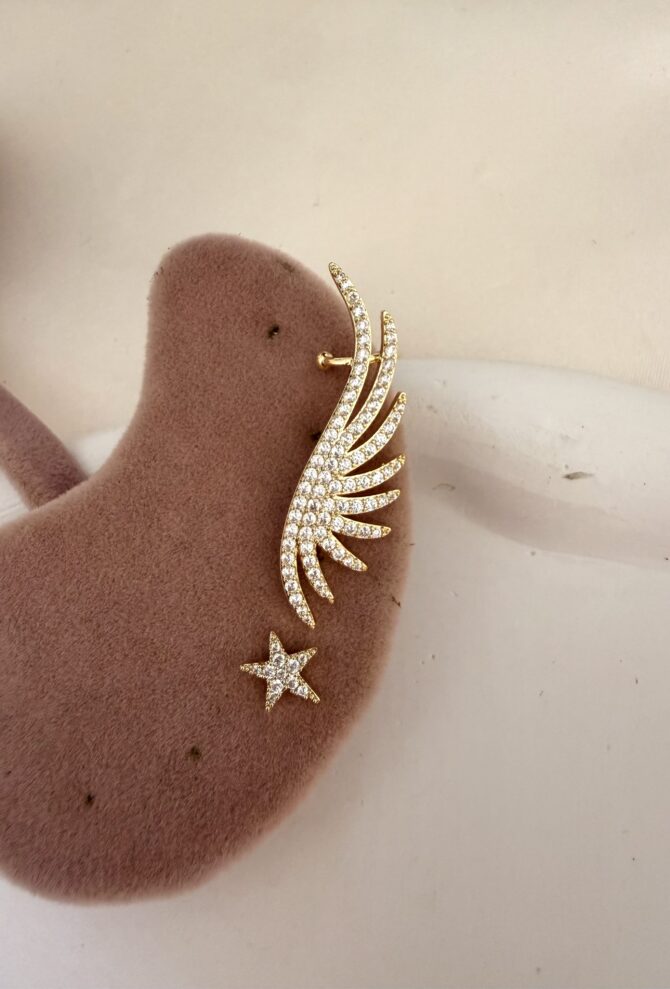 Tasarım Taşlı Kıkırdaklı Kanat Yıldız Küpe
