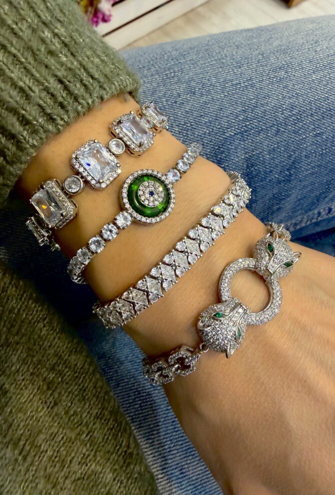 Luxury Yeşil Puma Zirkon Bileklik Kombin