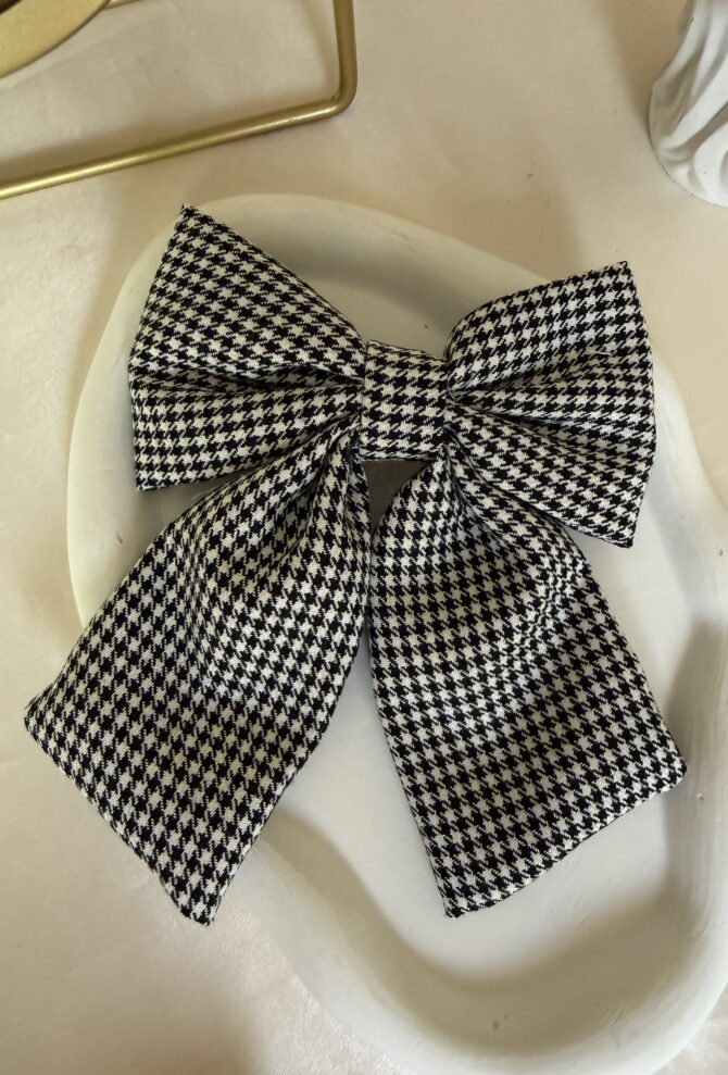 Siyah Beyaz Kaz Ayağı Desen Kuyruklu Fiyonk Toka