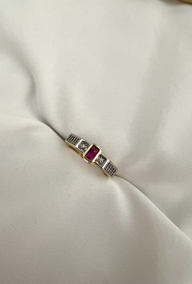 Ortası Fuşya Taş Boge Ayarlı Yüzük