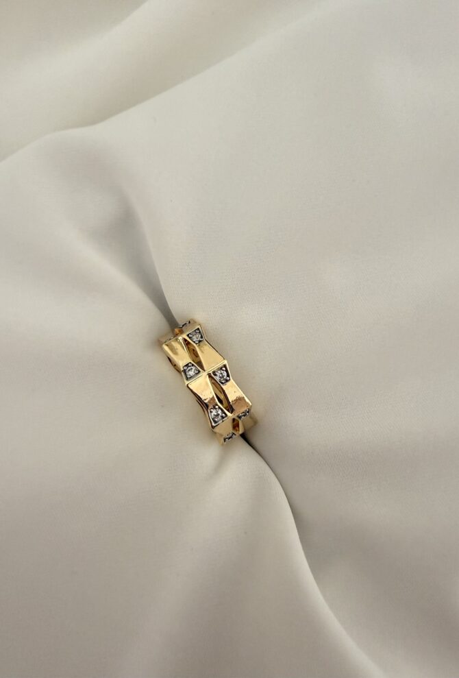Taşlı Gold Plaka Tasarım Yüzük