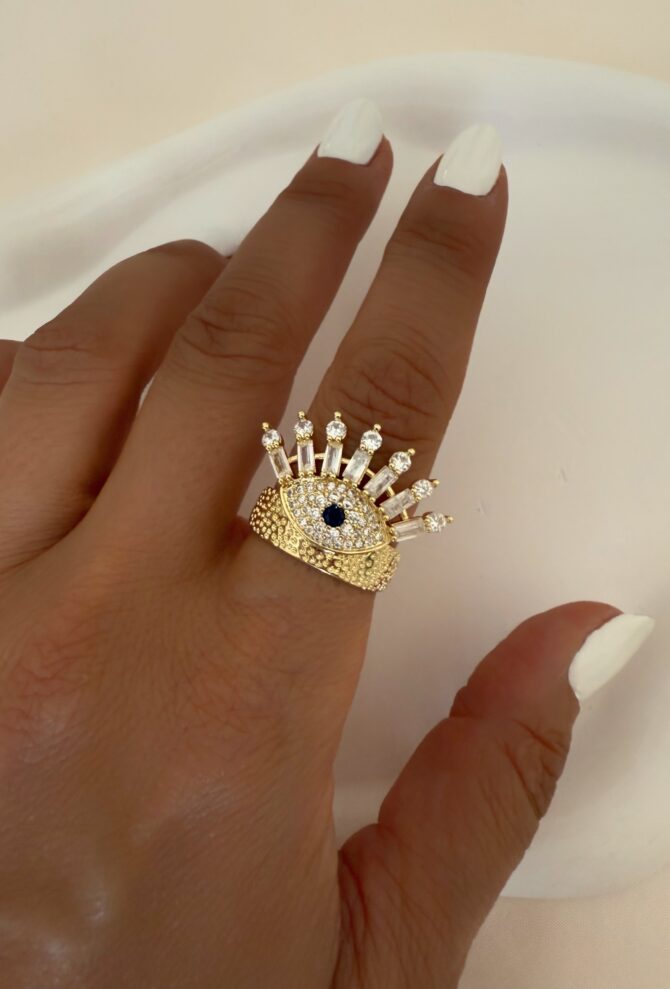 Kirpikli Göz Plaka Ayarlı Yüzük