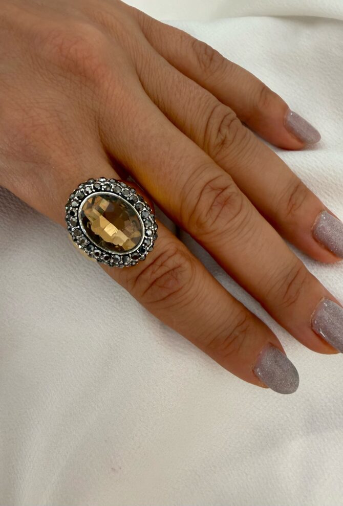 Bal Rengi Kristal Taş Ayarlı Yüzük