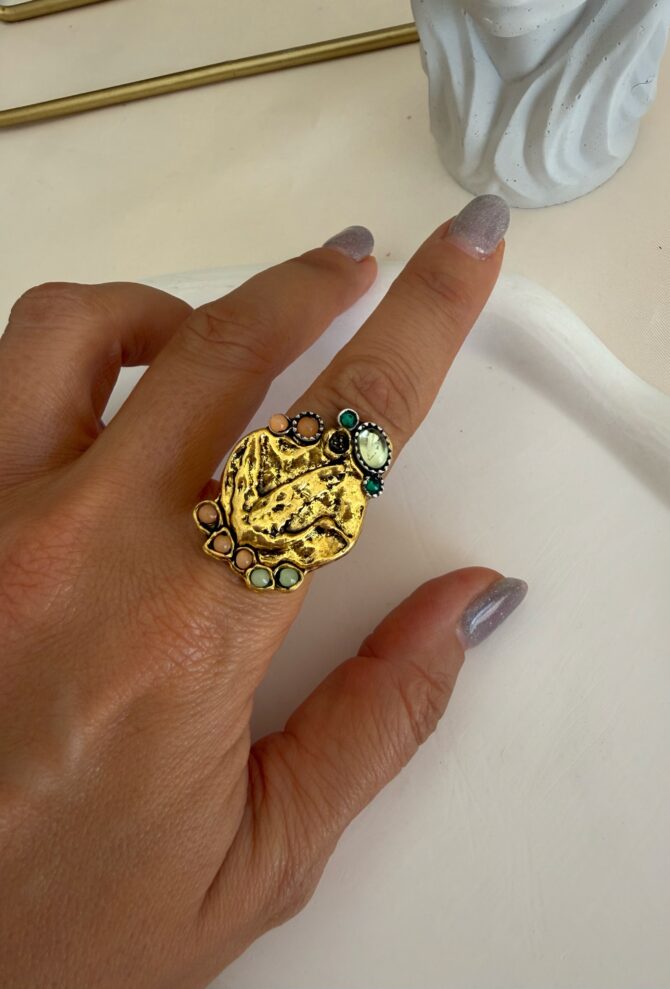 Renkli Mine Üzeri Taşlı Kuzey Yıldızı Ayarlı Yüzük