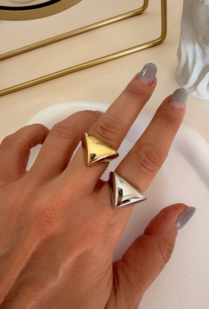 Plaka Üçgen Bombe Ayarlı Yüzük