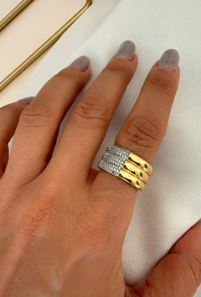 Yarısı Taş 3 lü Görünüm Ayarlı Yüzük