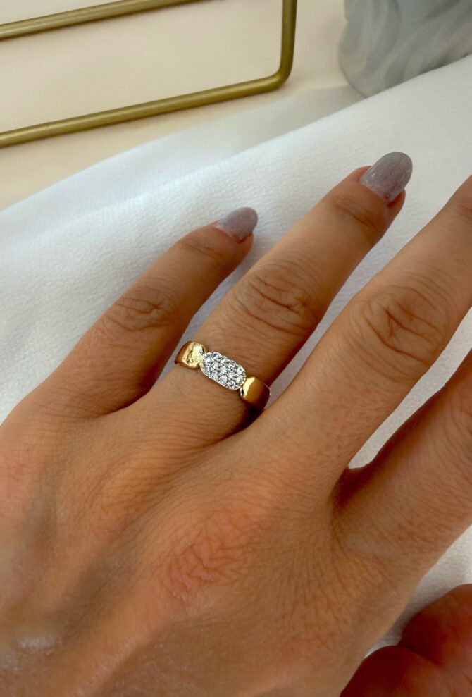 Bir Tarafı Plaka Bir Tarafı Taş Ayarlı Yüzük