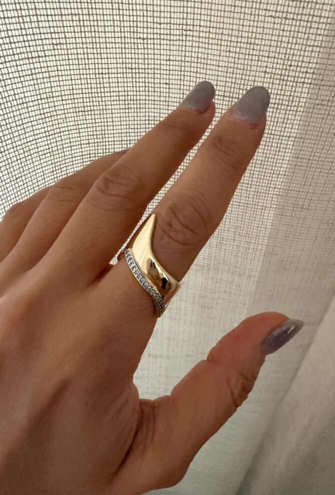 Tasarım Geometrik Plaka Ucu Taş Ayarlı Yüzük