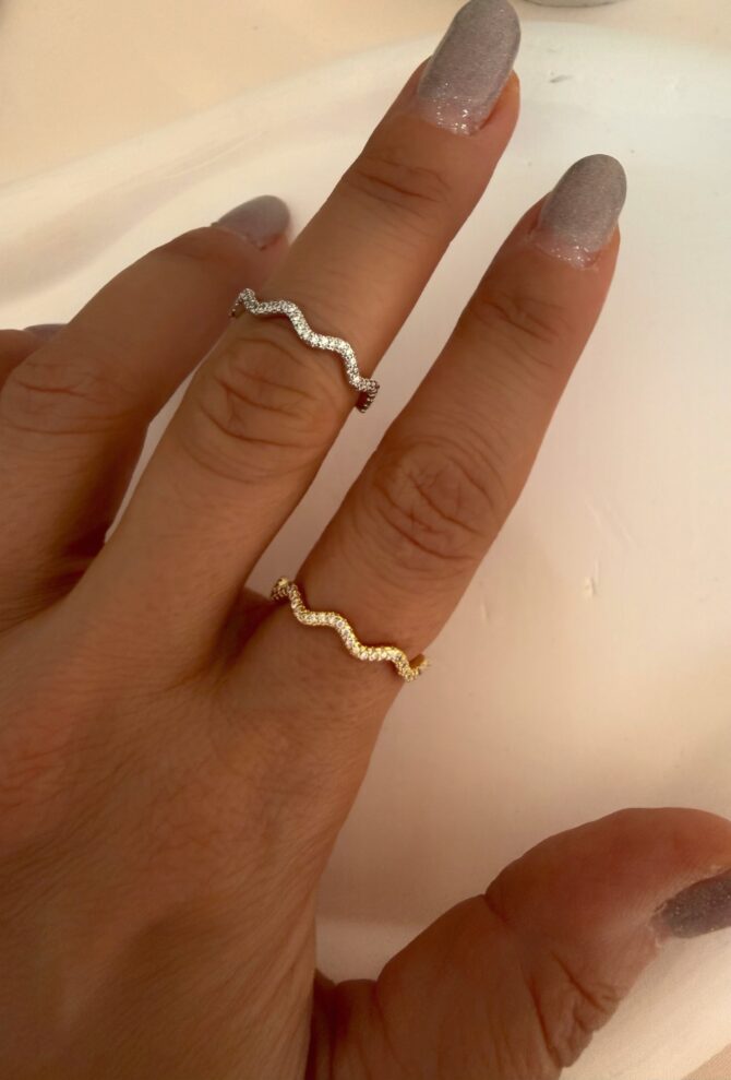 Dalga Model Taşlı Ayarlı Yüzük